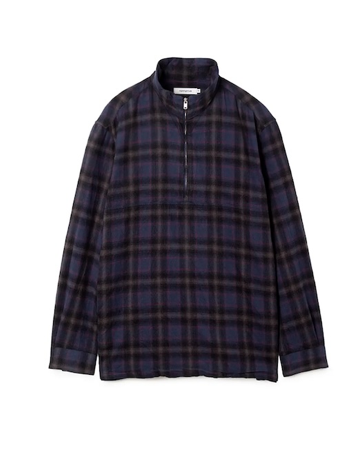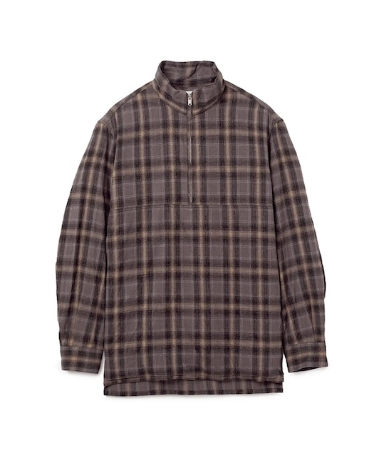 AUTUMN & WINTER 2025 COLLECTIONより、起毛感のあるコットンフランネル素材を使用した、プルオーバータイプのシャツジャケットです。スタンドカラーとハーフジップによるスポーティなデザインです。